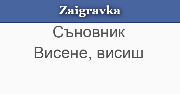 • ВИСЕНЕ, ВИСИШ - ли отвисоко в съня си, значи и най-малката грешка от твоя страна може да ти коства много. Висящи вещи в съня са знак за дебнеща опасност.