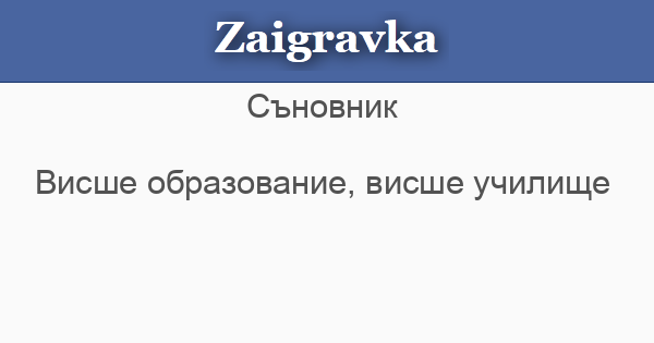 • ВИСШЕ ОБРАЗОВАНИЕ, ВИСШЕ УЧИЛИЩЕ (виж УНИВЕРСИТЕТ) - ако сънуваш, че имаш висше образование или учиш във висше училище, ще се сближиш с непочтени хора, ще имаш лоши другари и съветници.