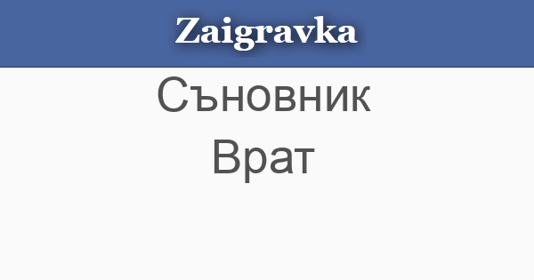• ВРАТ - вратът е символ на власт, богатства, почести. - ако висшестоящ човек види в съня си, че врата му е по-дебел, но без да е неприятен и грозен - на хубаво е! Ще чуе много добри известия и ще изпита удоволствие от работата си. Ако този сън се сънува от обикновен човек, означава забогатяване, издигане в обществото с почести и признание. - ако сънуваш тънък и измършавял врат, не е на добро. Ще паднеш от високо, ще се провалиш в работата и сделките. Ще преживееш неуважение, загуба на имот и приятелство. - ако някой те души, стиска или е вързал врата ти, внимавай, лошо предвещание. Ще бъдеш принуден да се подчиниш на нещо с грубост и насилие. Враговете ти ще тържествуват над безсилието ти! - ако видиш, че на врата си имаш повече от една глава - ще се сдобиеш с власт, почести и много сила. - ако някой ти отсича врата - загуба на човек от семейството и на имотите - ако насън са те осъдили на смърт чрез обезглавяване - не се притеснявай, ще се отървеш от проблемите си. Но ако този сън е видян от търговец, банкер, земевладелец, изобщо от бизнесмен - внимавай, вещае провал и неочаквани трудности в работата! - ако ти отсекат врата, но въпреки това си останал жив - много е добре! Дерзай, ще успееш в това, което си започнал в работата и в личния живот!