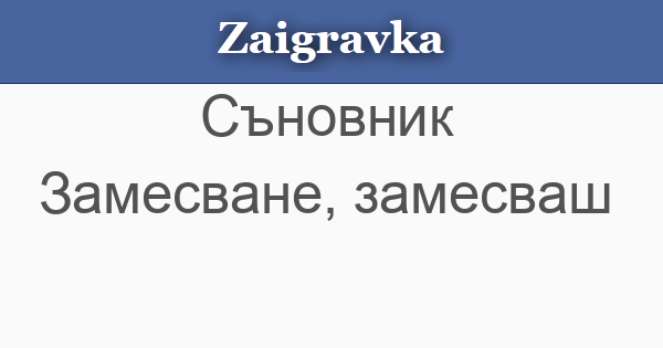 Заигравка » Съновник » Замесване, замесваш абвгдежзийклмнопрстуфхцчшщъьюя Замесване, замесваш • ЗАМЕСВАНЕ, ЗАМЕСВАШ (виж БРАШНО, МЕСЕНЕ, ТЕСТО). « Предишна Следваща »