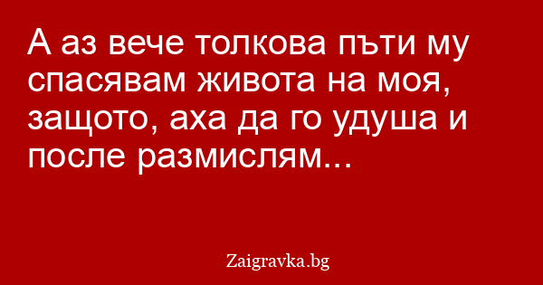 А аз вече толкова пъти му спасявам живота на моя, защото, аха да го удуша и после размислям...