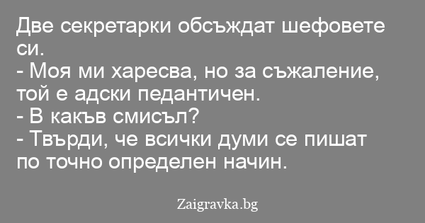 - Моя ми харесва, но за съжаление, той е адски педантичен.