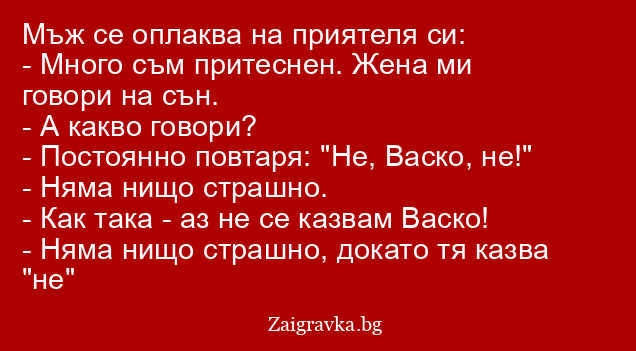 - Много съм притеснен. Жена ми говори на сън.