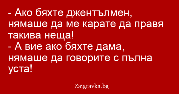 - Ако бяхте джентълмен, нямаше да ме карате да правя такива неща!