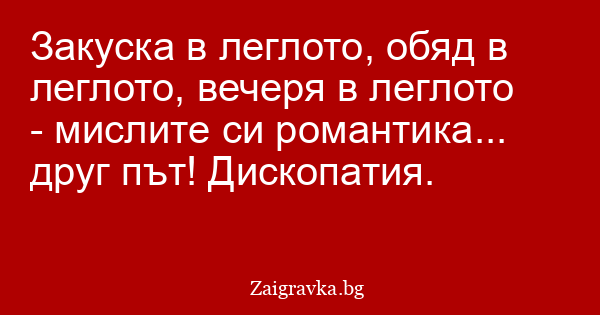 Закуска в леглото, обяд в леглото, вечеря в леглото - мислите си романтика... друг път! Дископатия.
