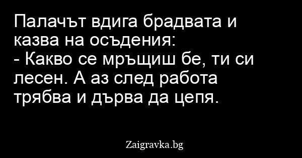 - Какво се мръщиш бе, ти си лесен. А аз след работа трябва и дърва да цепя.