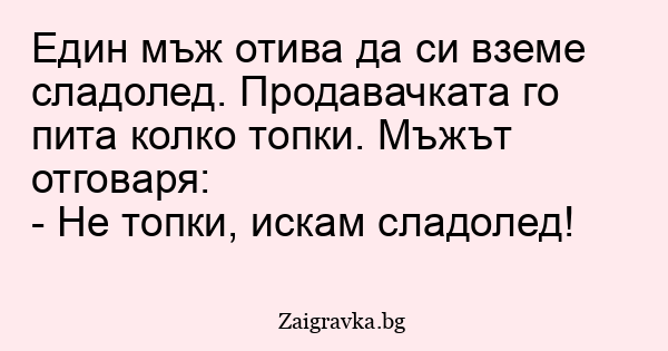 Един мъж отива да си вземе сладолед. Продавачката го пита колко топки. Мъжът отговаря: