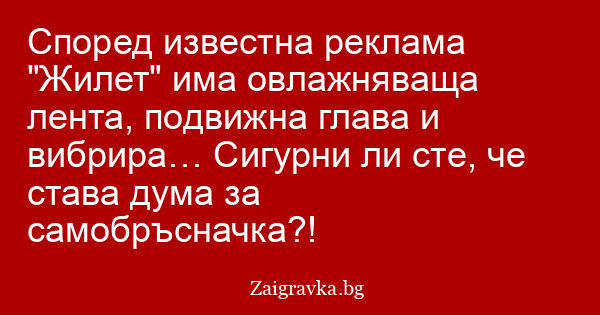 Според известна реклама "Жилет" има овлажняваща лента, подвижна глава и вибрира… Сигурни ли сте, че става дума за самобръсначка?!