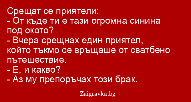 - Вчера срещнах един приятел, който тъкмо се връщаше от сватбено пътешествие.