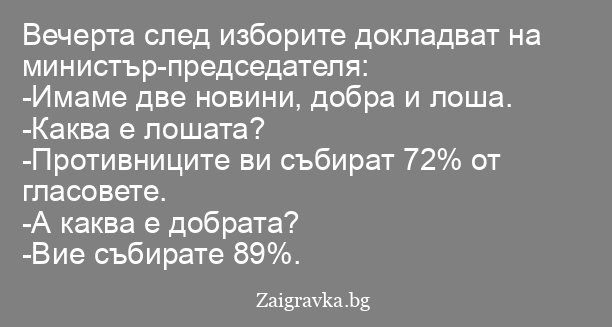 Вечерта след изборите докладват на министър-председателя: