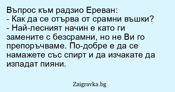 - Най-лесният начин е като ги замените с безсрамни, но не Ви го препоръчваме. По-добре е да се намажете със спирт и да изчакате да изпадат пияни.