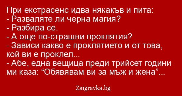 - Абе, една вещица преди трийсет години ми каза: “Обявявам ви за мъж и жена”...