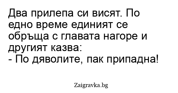 Два прилепа си висят. По едно време единият се обръща с главата нагоре и другият казва: