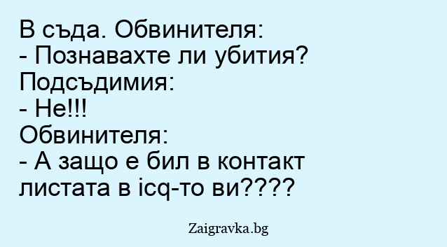 - Вчера набрах смелост и целунах Силвана. А тя:" Какво трябва да значи това?", а аз да взема да изтреса:"Искане за оторизация"...После ми каза да отида у тях събота да се логна...