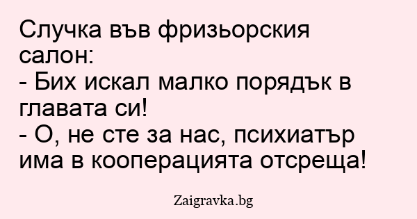 - О, не сте за нас, психиатър има в кооперацията отсреща!