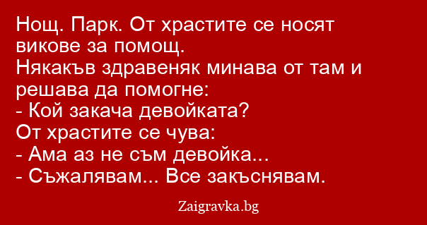 Едно момченце чуло през нощта пъшкане и охкане. Звуците идвали от спалнята на родителите му. Отишло хлапето да провери какво става и какво вижда - мама и татко се чукат сладко.