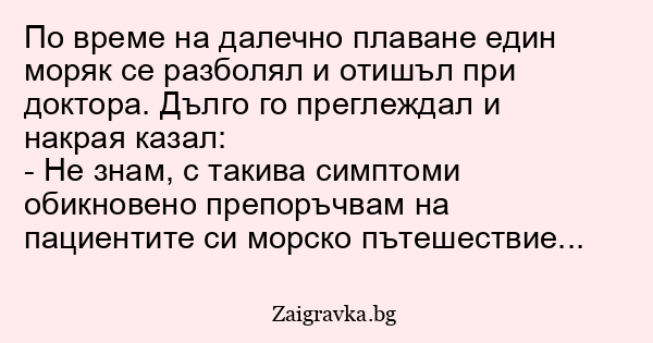 По време на далечно плаване един моряк се разболял и отишъл при доктора. Дълго го преглеждал и накрая казал: