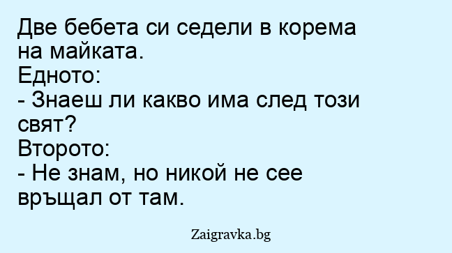 Вървят си двама туристи в Африка и не щеш ли виждат крокодил, нагълтал един негър почти целия. Само главата му се подава. И единия възкликва "Глей ги бе, глей ги, моля ти се, тия нямат какво да ядат и умират от глад, а си купил спален чувал от "Лакост"..!!