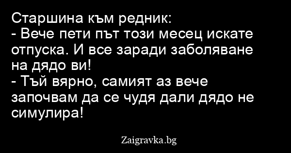 - Вече пети път този месец искате отпуска. И все заради заболяване на дядо ви!