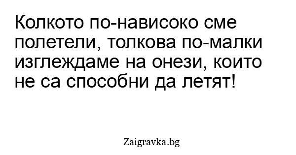 Колкото по-нависоко сме полетели, толкова по-малки изглеждаме на онези, които не са способни да летят!