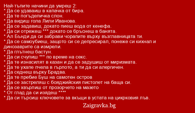 * Да се самоубиеш, защото си се депресирал, понеже си кихнал и динозаврите са измрели.
