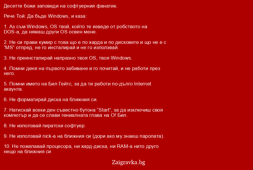 1. Аз съм Windows, OS твой, който те изведе от робството на DOS-a, да нямаш други OS освен мене.