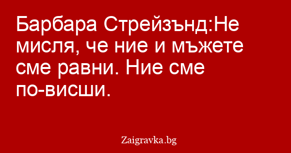 Барбара Стрейзънд:Не мисля, че ние и мъжете сме равни. Ние сме по-висши.