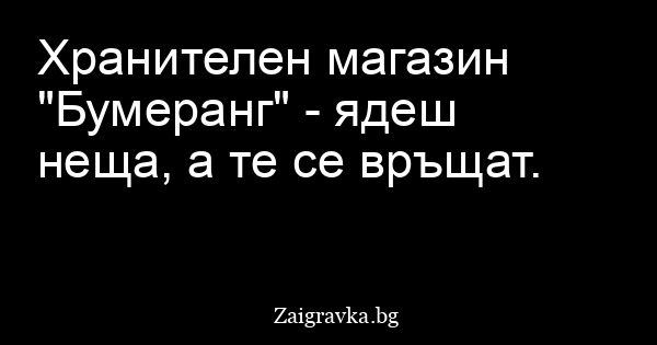 Хранителен магазин "Бумеранг" - ядеш неща, а те се връщат.