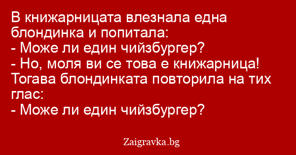 В книжарницата влезнала една блондинка и попитала: