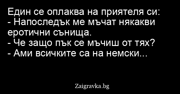 - Бе да знаеш какво чух! Точно в полунощ ако отидеш в гробището и изкопаеш гроба под ореха, ще излезе един мъртвец и ще те попита какъв недъг имаш. Казваш му и хоп - излекуван си! Но мен ме е страх да се пробвам...