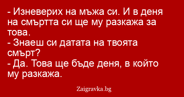- Изневерих на мъжа си. И в деня на смъртта си ще му разкажа за това.