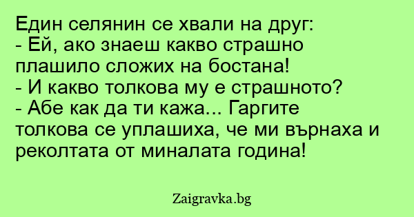 - Ей, ако знаеш какво страшно плашило сложих на бостана!