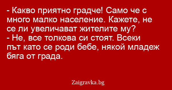 - Какво приятно градче! Само че с много малко население. Кажете, не се ли увеличават жителите му?