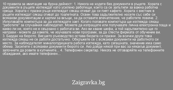Необходимо е да се стараете да изглеждате нервен и раздразнен, за да създадете впечатление в шефовете, че сте непрекъснато зает.