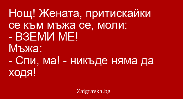 Нощ! Жената, притискайки се към мъжа се, моли: