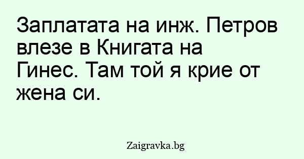Заплатата на инж. Петров влезе в Книгата на Гинес. Там той я крие от жена си.
