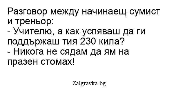 - Учителю, а как успяваш да ги поддържаш тия 230 кила?