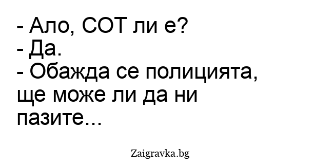 - Ало, полицията ли е? Обраха ни?! Елате бързо!