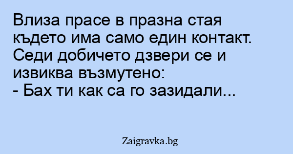 Влиза прасе в празна стая където има само един контакт. Седи добичето дзвери се и извиква възмутено: