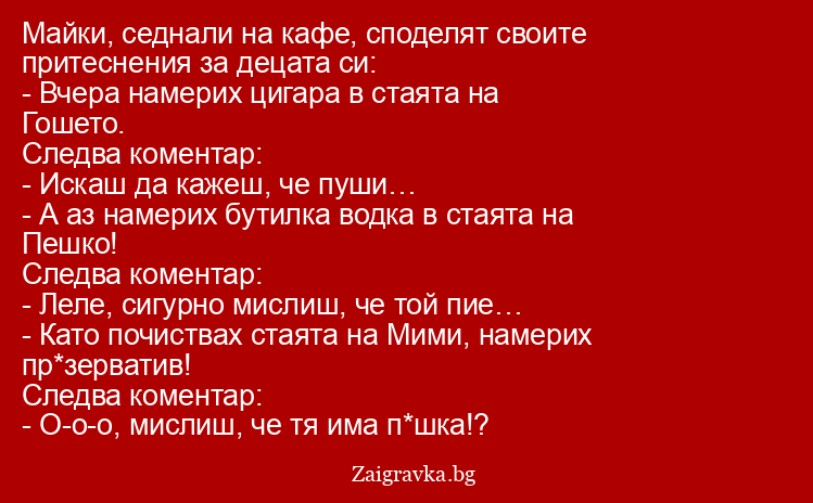 – Мамо, оня чичко от гардероба тръгна ли си?…
