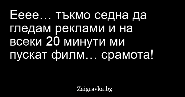Еeee… тъкмо седна да гледам реклами и на всеки 20 минути ми пускат филм… срамота!