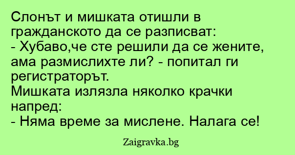 - Хубаво,че сте решили да се жените, ама размислихте ли? - попитал ги регистраторът.