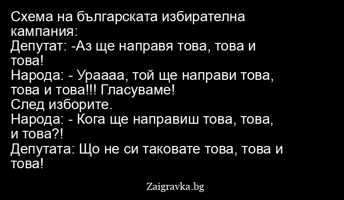 Народа: - Ураааа, той ще направи това, това и това!!! Гласуваме!