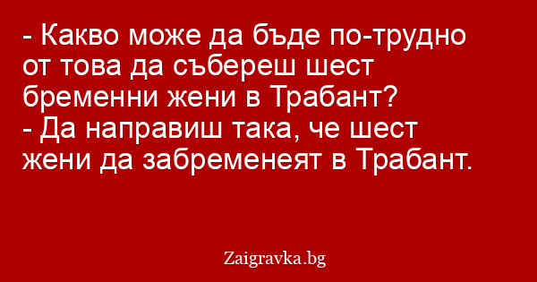 - Да направиш така, че шест жени да забременеят в Трабант.