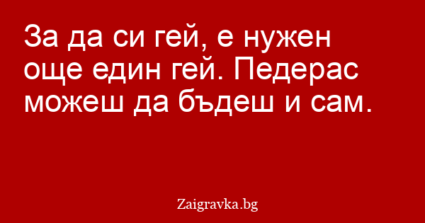За да си гей, е нужен още един гей. Педерас можеш да бъдеш и сам.