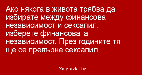 Ако някога в живота трябва да избирате между финансова независимост и сексапил, изберете финансовата независимост. През годините тя ще се превърне сексапил...