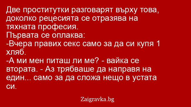 Две проститутки разговарят върху това, доколко рецесията се отразява на тяхната професия.