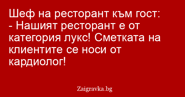 - Нашият ресторант е от категория лукс! Сметката на клиентите се носи от кардиолог!