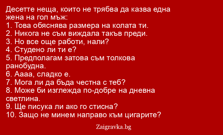 Десетте неща, които не трябва да казва една жена на гол мъж: