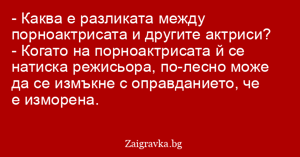 - Когато на порноактрисата й се натиска режисьора, по-лесно може да се измъкне с оправданието, че е изморена.